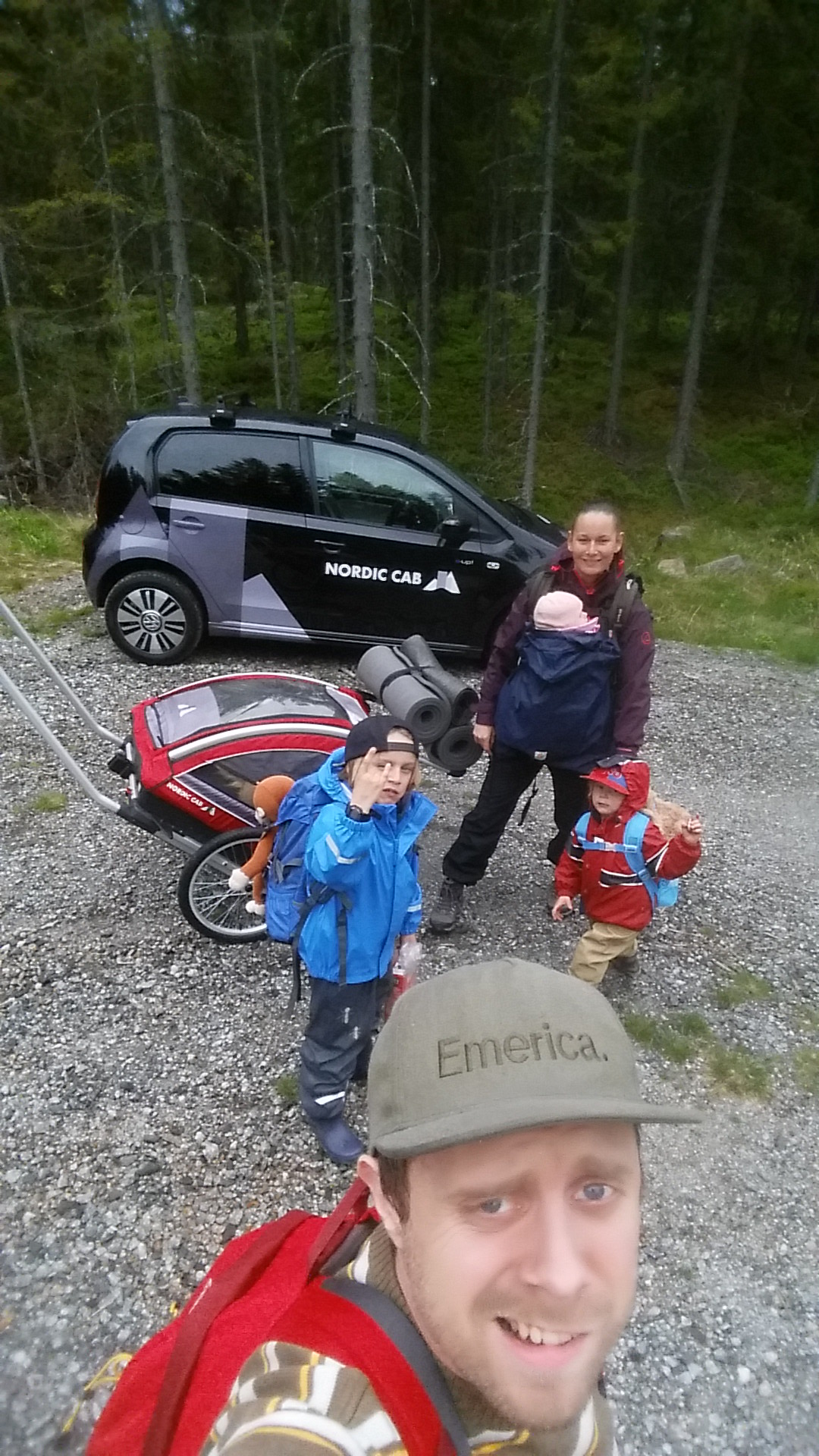 Rimelig stolte av oss selv var vi, når vi kom oss ut av bilen med alt utstyret og så hvor mye vi faktisk hadde fått plass til i og på den lille bilen. Vi tvilte jo på at dette skulle gå før vi begynte å pakke inn. Men vil man på tur, så kommer man seg på tur!