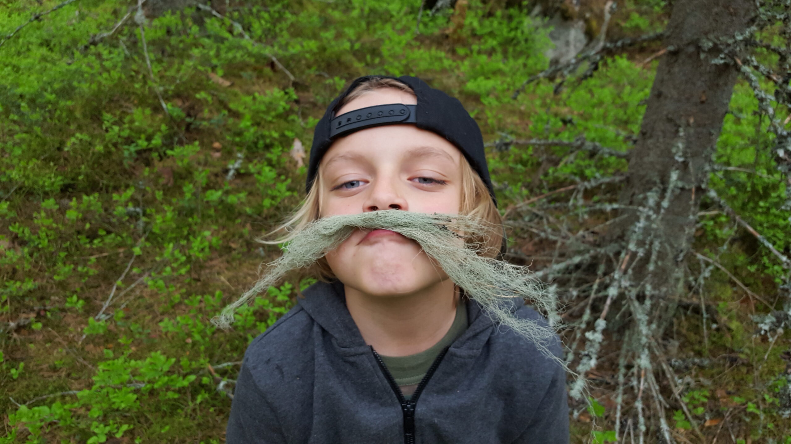 Eldstemann hadde nok sett for seg å komme hjem å spille Minecraft, og var rimelig skuffa da han fikk vite vi skulle videre. «Jeg gidder jo ikke gå på tur, når vi akkurat har vært på en tur». Men som vanlig var det ikke mye som skulle til for å få tankene bort fra spillet hjemme. Mannen fant en stokk og noen kongler og dro i gang litt skogsgolf. Og humøret kom på topp igjen. Mosjømarka er kjent for sine store arealer med furuskog, og det var veldig ulikt de stedene vi har vært tidligere. Åpent, lyst med høye furutrær så langt øyet kunne se.
