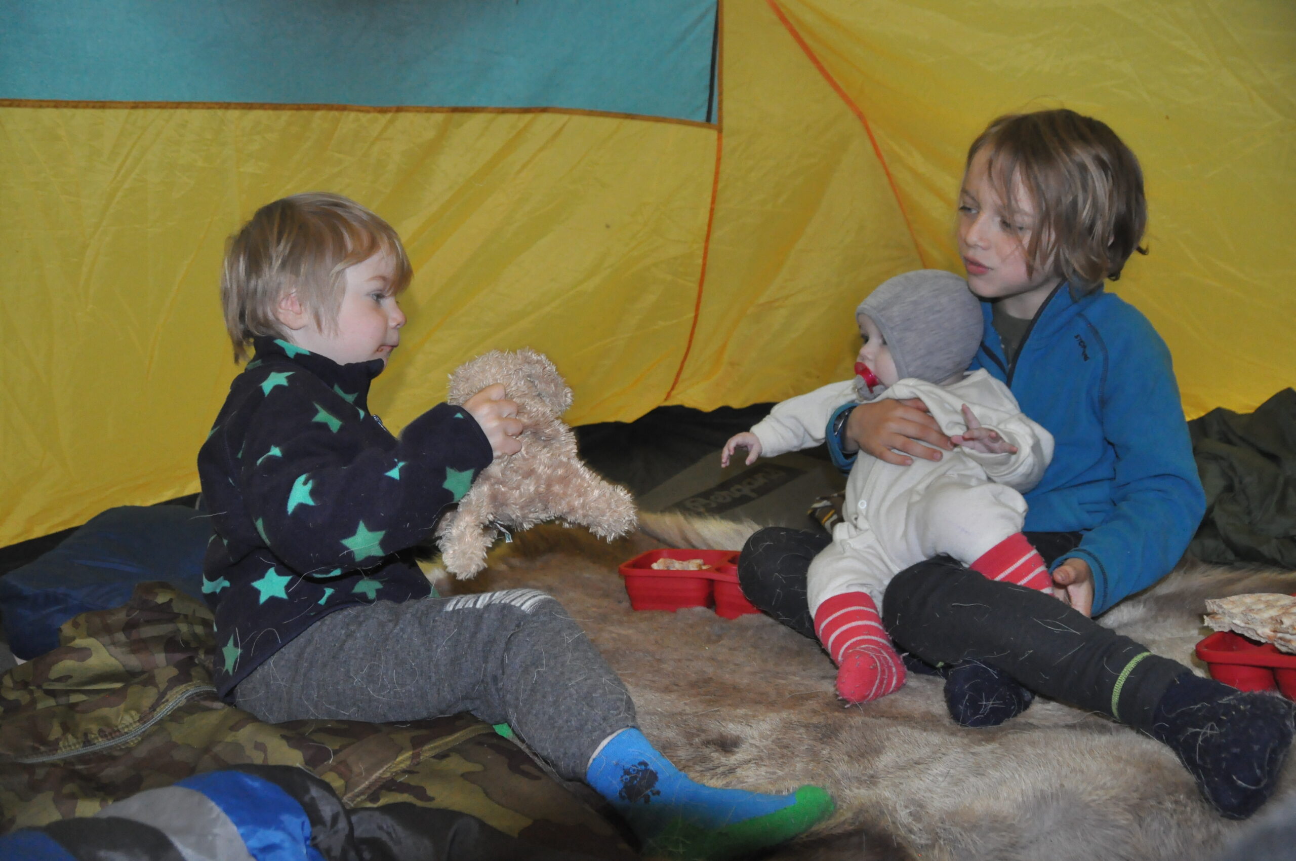 Å få hjelpe til med å sette opp teltet er alltid stas. Ikke lenge han har ro nok til det, men man vokser på å få bidra litt.